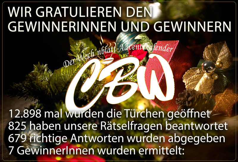 Wir gratulieren den Gewinnerinnen und Gewinnern, die von uns in den nächsten Tagen verständigt werden!