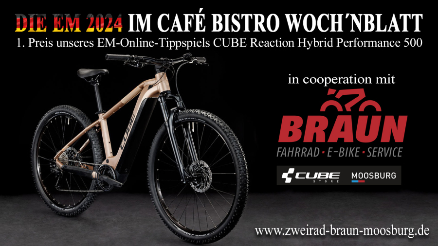 ein E-Bike "CUBE Reaction Hybrid Performance" im Wert von ca. 2.500 € (co-financed by Zweirad Braun & Café Bistro Woch´nblatt)