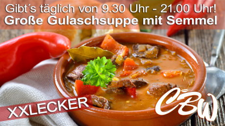 Hausgemachte Gulaschsuppe mit Semmel (a,d,i) € 8,90
