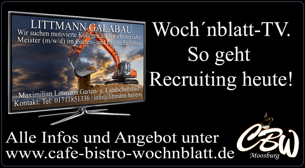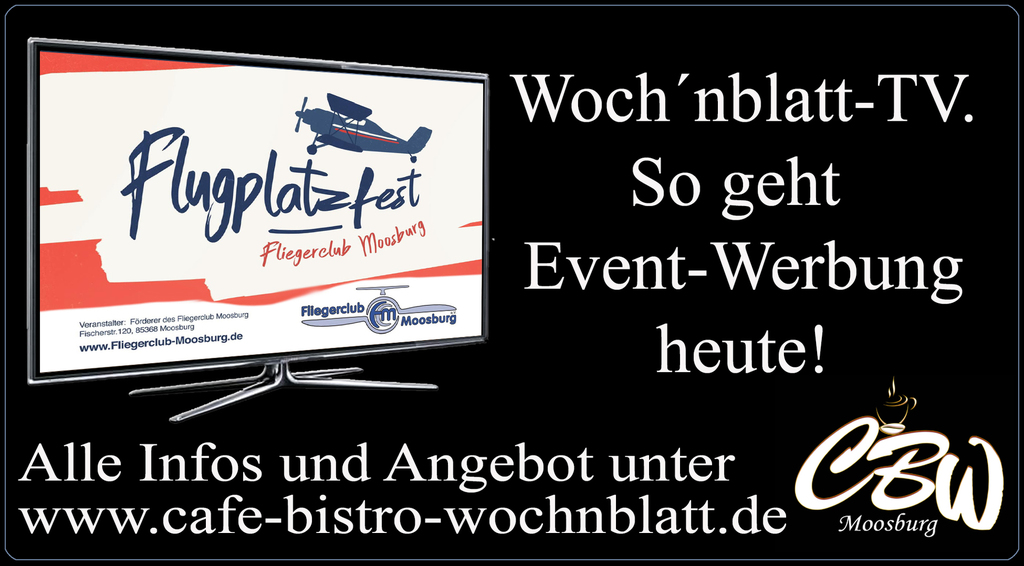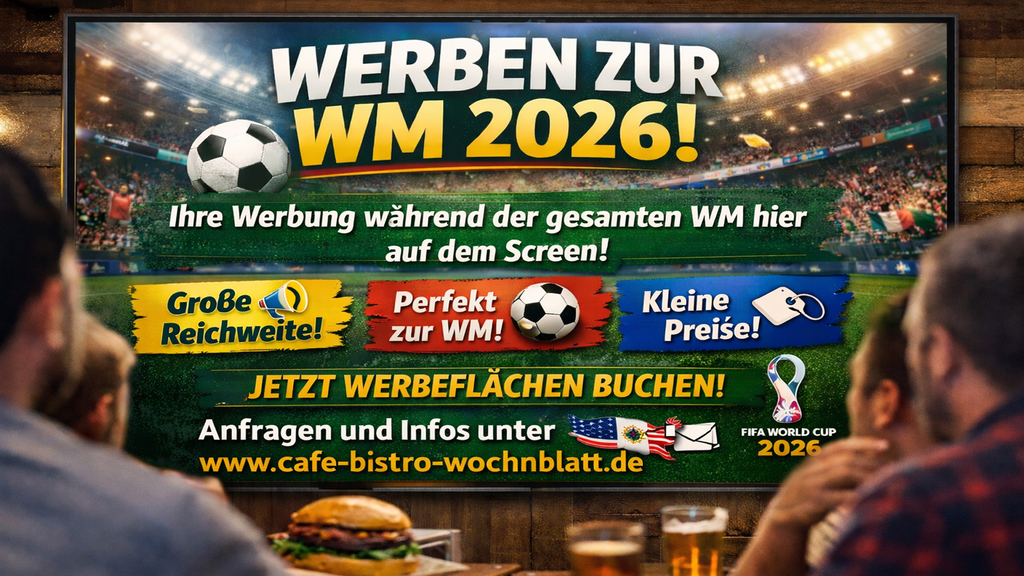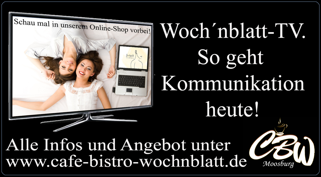 Du hast Interesse an einer Ausstrahlung im Woch'nblatt-TV? Für ein Angebot nutze das nachfolgende Kontakformular oder schick uns eine kurze Nachricht an tv-werbung@cafe-bistro-wochnblatt.de. Wir melden uns bei dir und unterbreiten dir gerne ein Angebot.